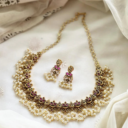 Temple kundan Jadau Nakshi polish short haaram set - Clearance