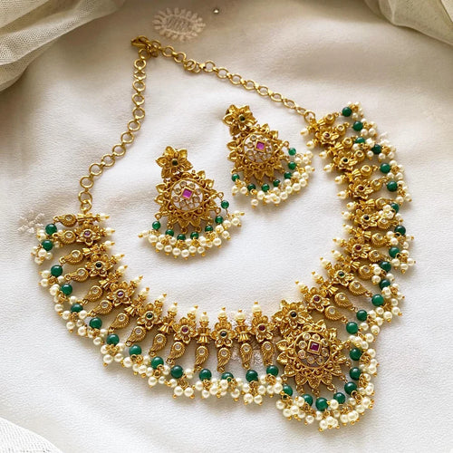 Black Gold Plated Polki Zirconia & Pearl Beaded Choker Set Black Gold Plated Polki Zirconia & Pearl Beaded Choker Set